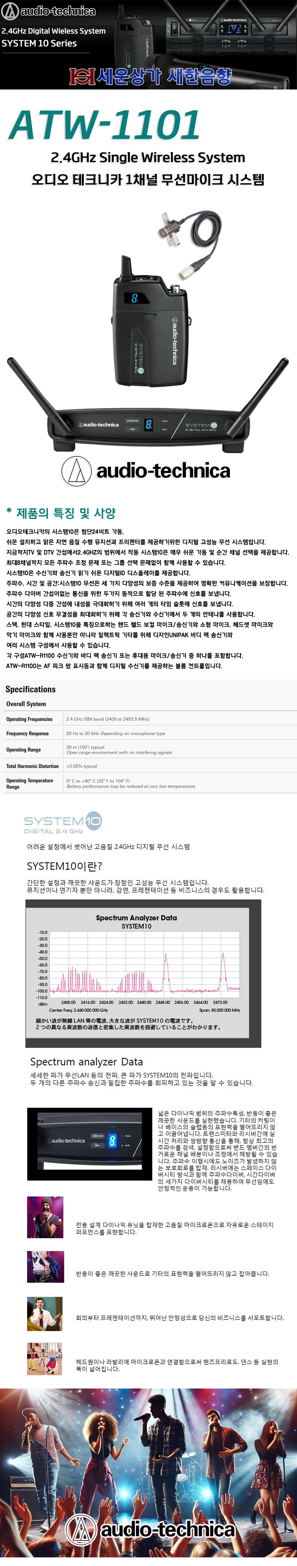 ATW-1101 오디오테크니카 1채널 무선 마이크, 고음질 2.4GHz, ATW1101 : 새한음향 세운상가
