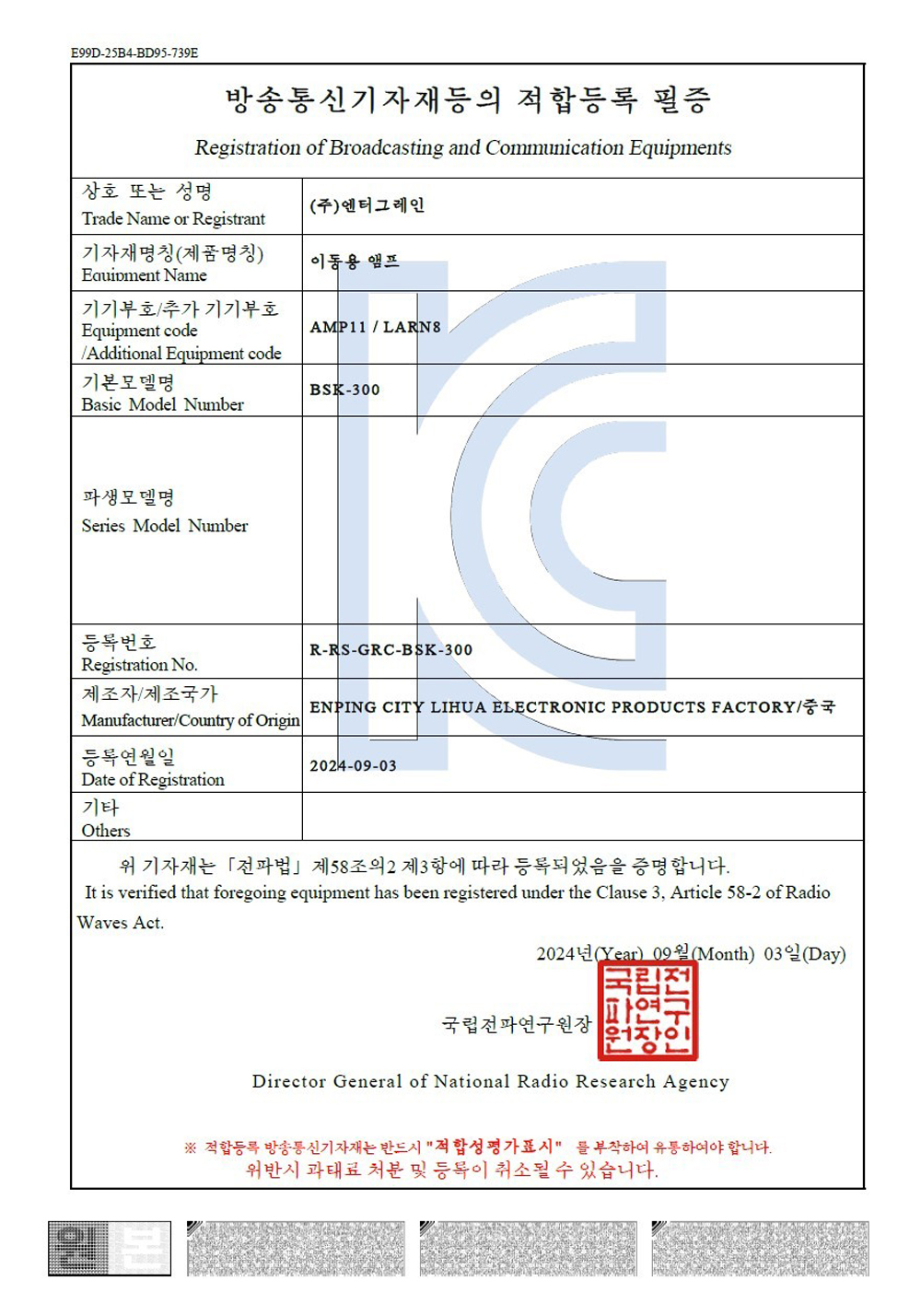 - 모델명 : BKS-300