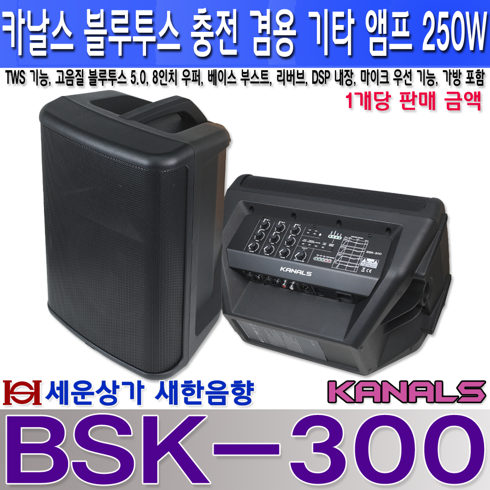 BSK-300 카날스 충전겸용 기타 앰프, TWS 기능, 블루투스, 리버브, DSP 내장 : 새한음향 세운상가