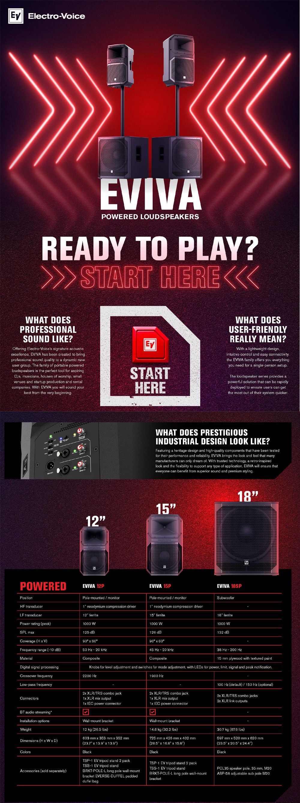 - EVIVA 시리즈는 Electro-Voice의 시그니처 음향 기술이 집약된 휴대용 파워드 스피커 시리즈로,