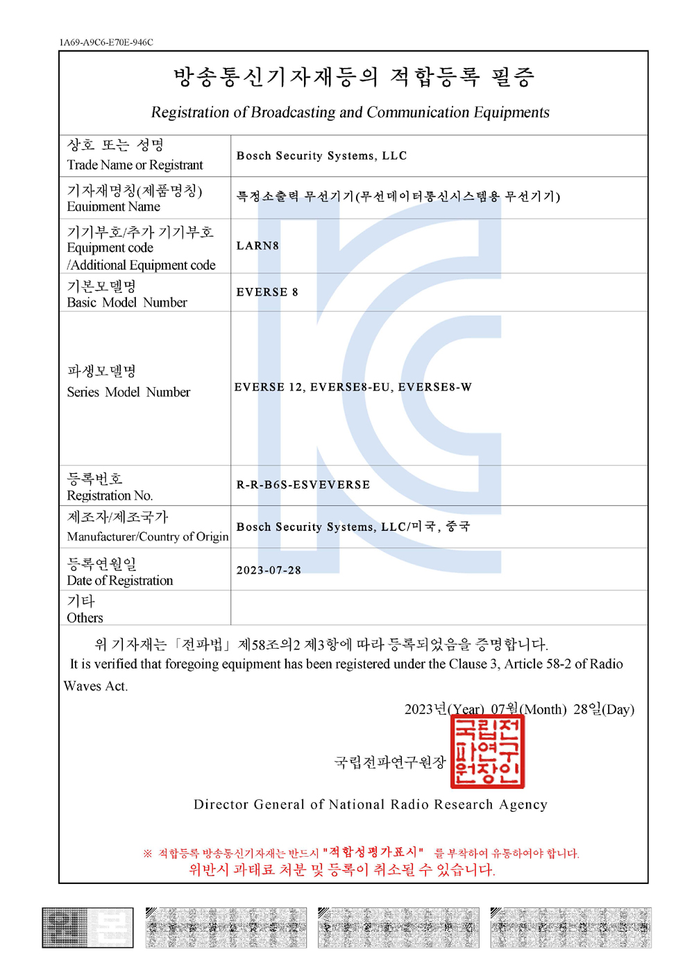 - 방송 통신 기자재 인증 번호 : R-R-B6S-ESVEVERSE
