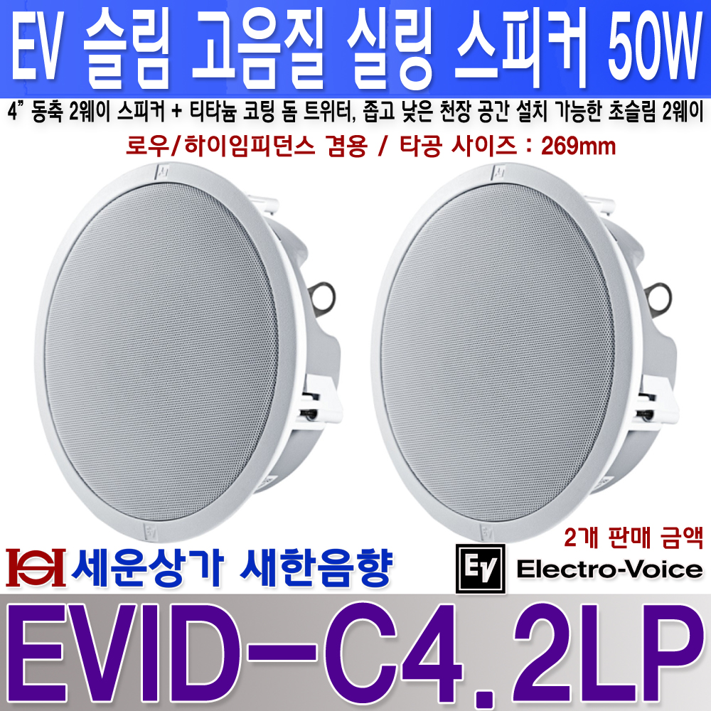 EVID-C4.2LP 이브이 EV 실링 스피커 50W,2웨이 방식,하이/로우임피던스 겸용 : 새한음향 세운상가