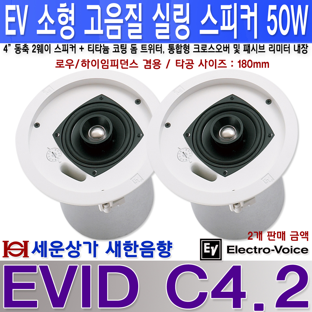 EVID-C4.2 이브이 EV 고음질 실링 스피커 50W, 2웨이 방식,하이/로우임피던스 : 새한음향 세운상가