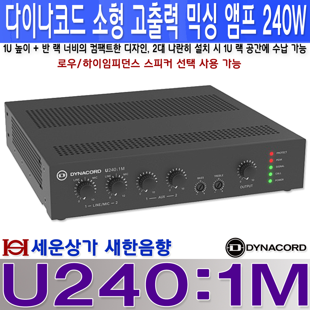 U240:1M 다이나코드 소형 믹서 앰프 240W, 슬림 사이즈, 하이/로우임피던스 겸용 : 새한음향 세운상