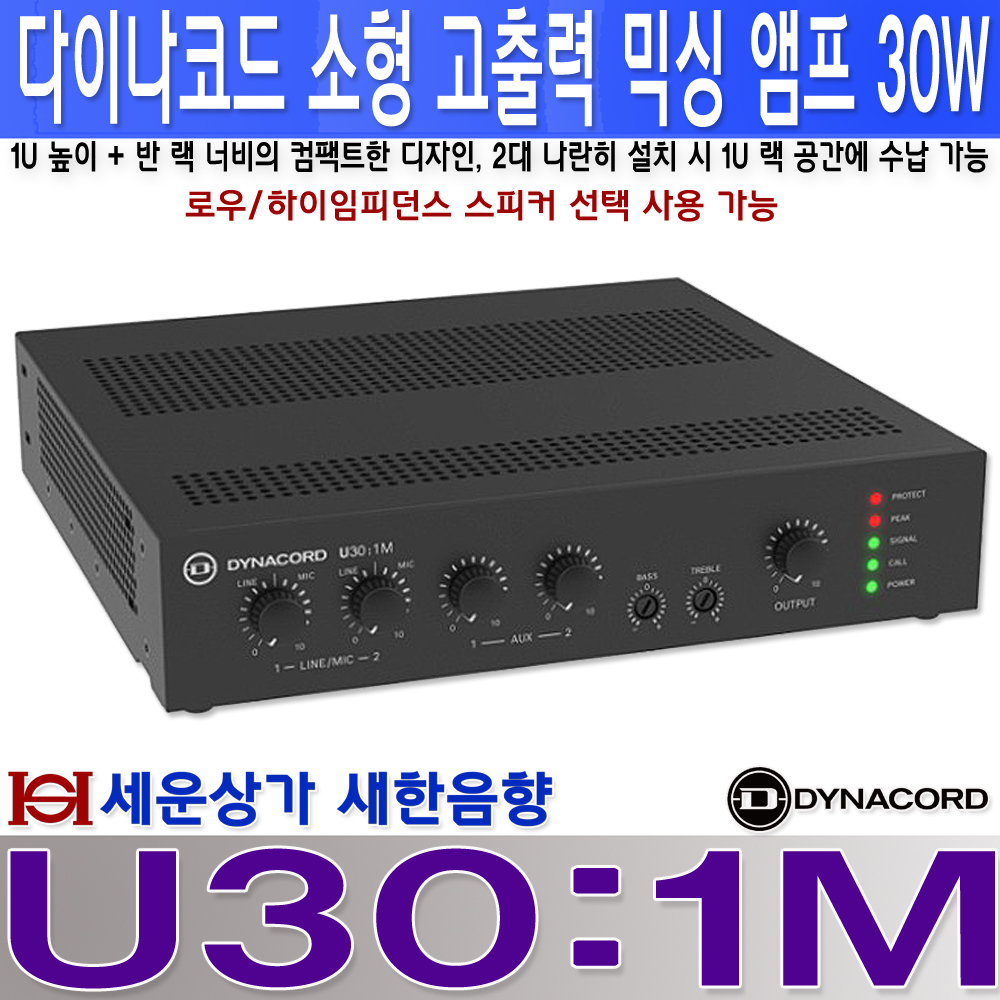U30:1M 다이나코드 소형 믹서 앰프 30W, 슬림 사이즈, 하이/로우임피던스 겸용 : 새한음향 세운상가