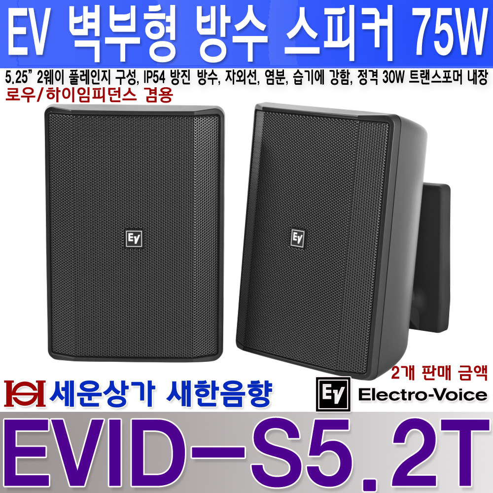 EVID-S5.2T 이브이EV 벽부형 스피커 75W,IP54 방수 방진,하이/로우임피던스 : 새한음향 세운상가