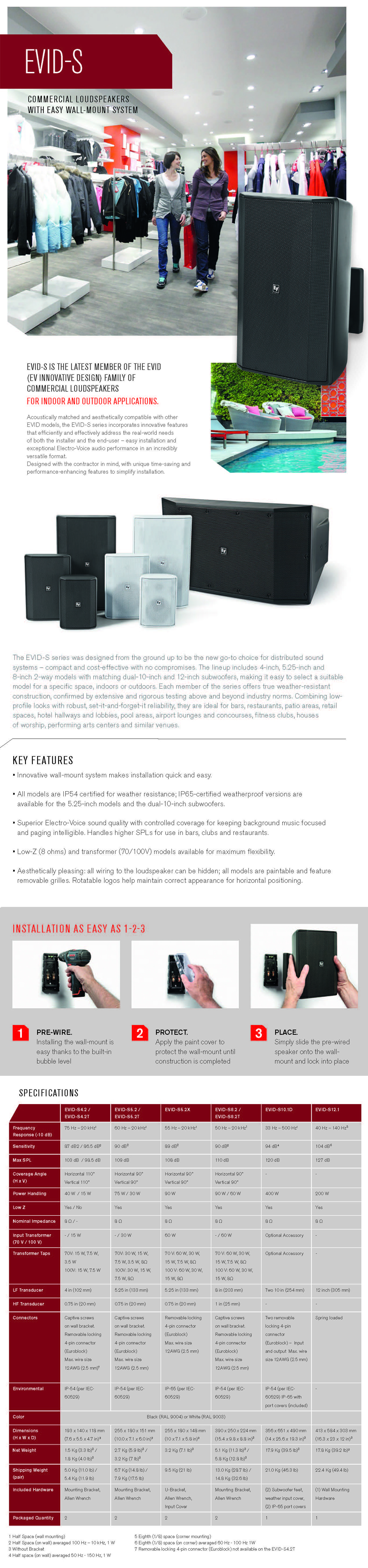 - EVID-S5.2는 5.25"(133mm) 드라이버를 탑재한 고성능 2웨이 풀레인지 스피커로, 넓고 균일한 커버리지와