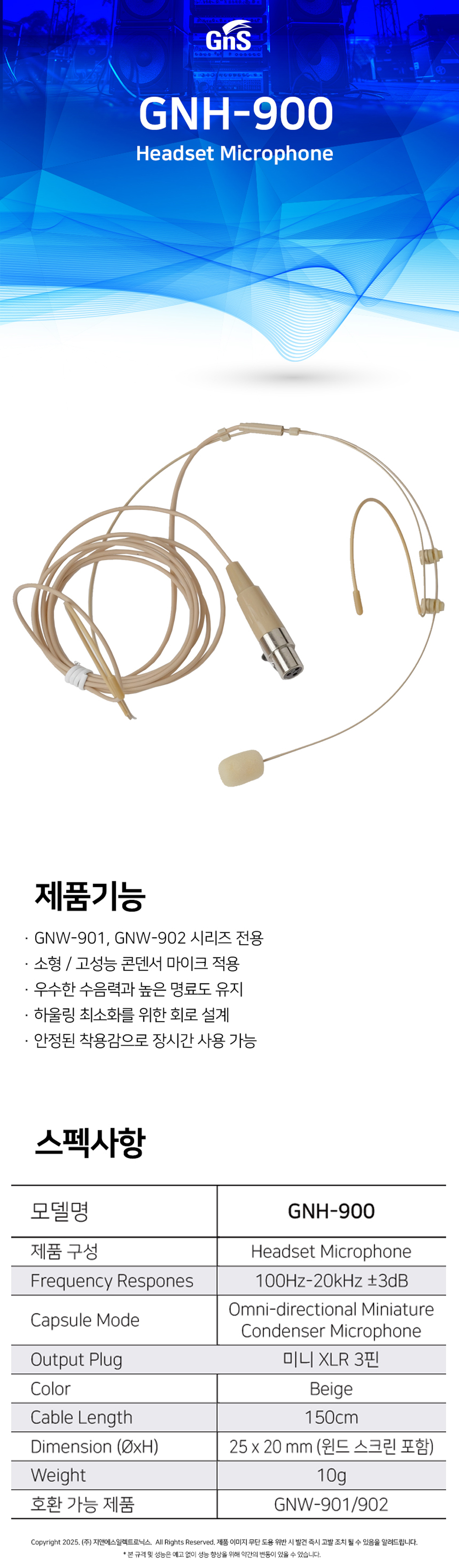 * 제품의 특징 및 사양 ( 지앤에스 슬림 고감도 콘덴서형 헤드셋 마이크 GNH-900 )