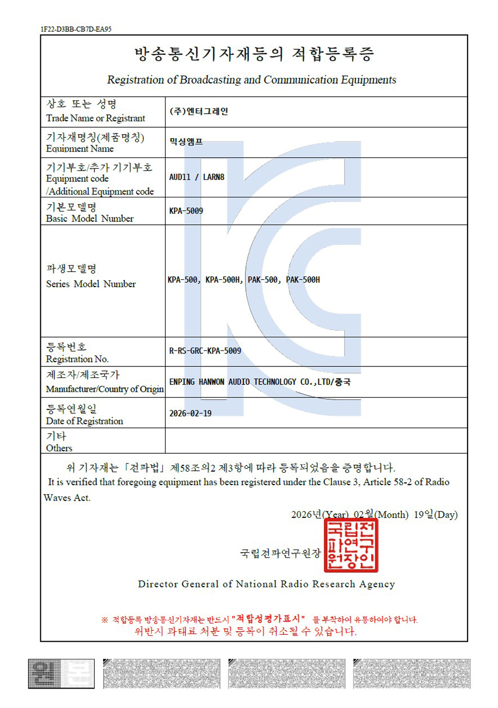 - 인증번호 : R-RS-GRC-KPA-5009
