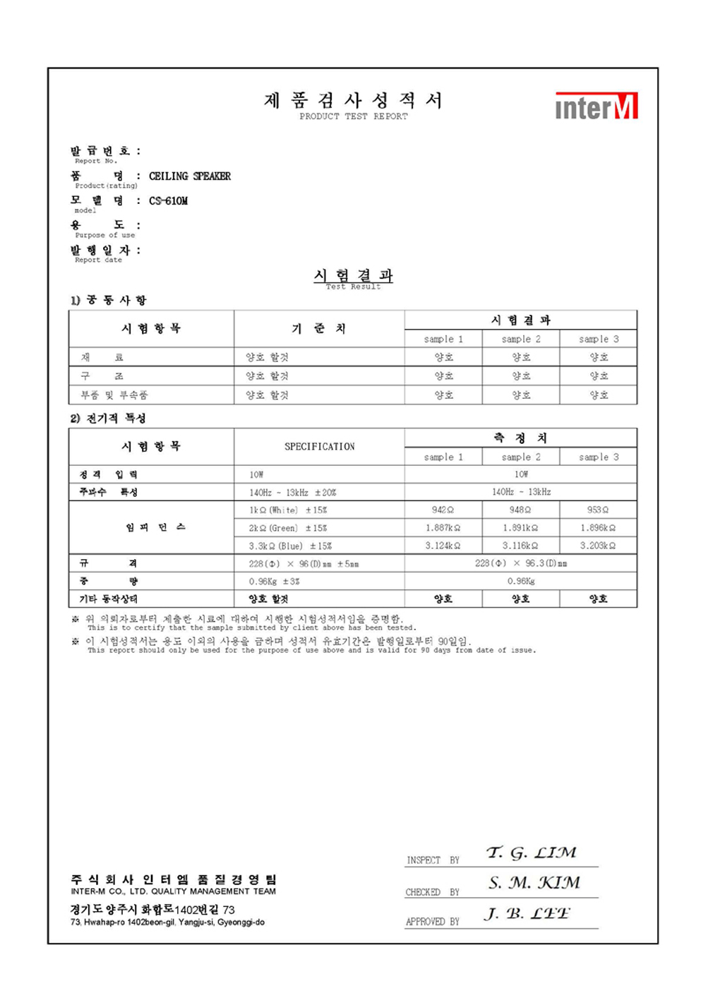 - 모델명 : CS-610M 인터엠 실링 스피커