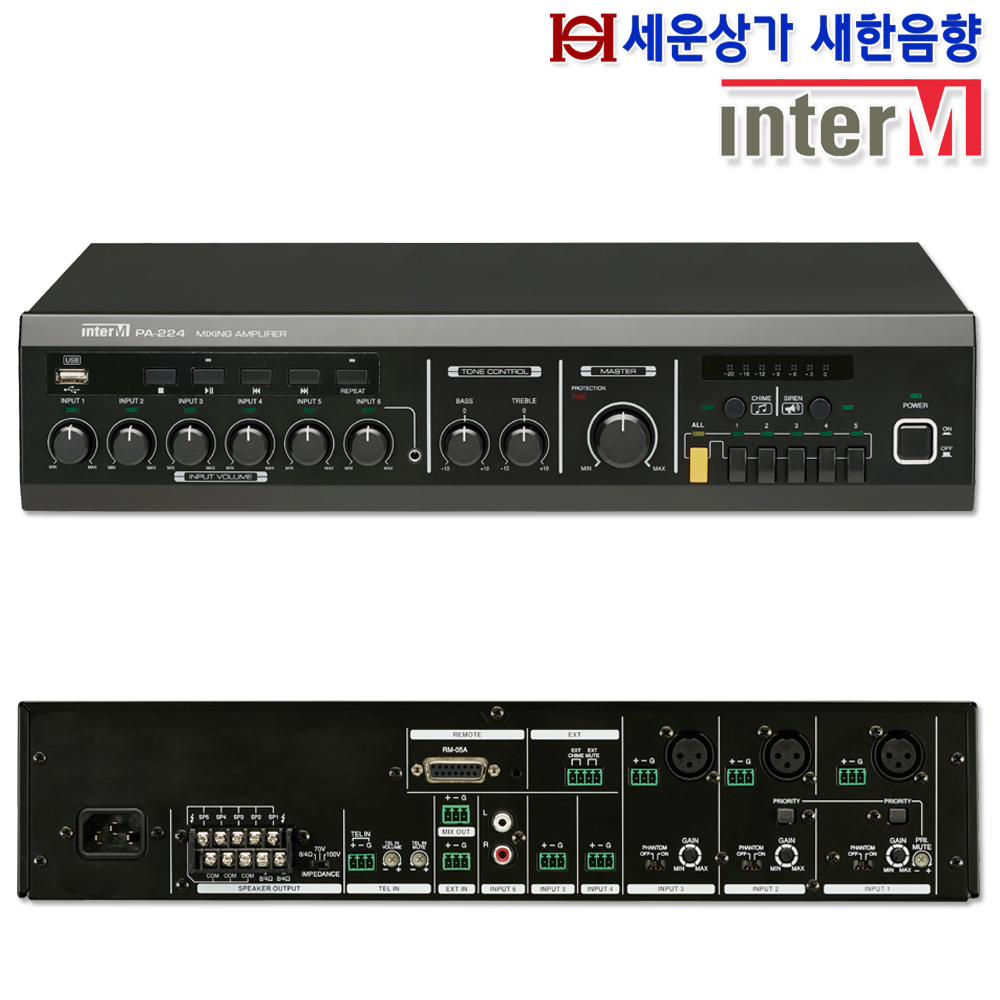 PA-224 인터엠 USB 믹싱 앰프 240W, 차임, 싸이렌 뮤트,팬텀파워, 5셀렉터 : 새한음향 세운상가