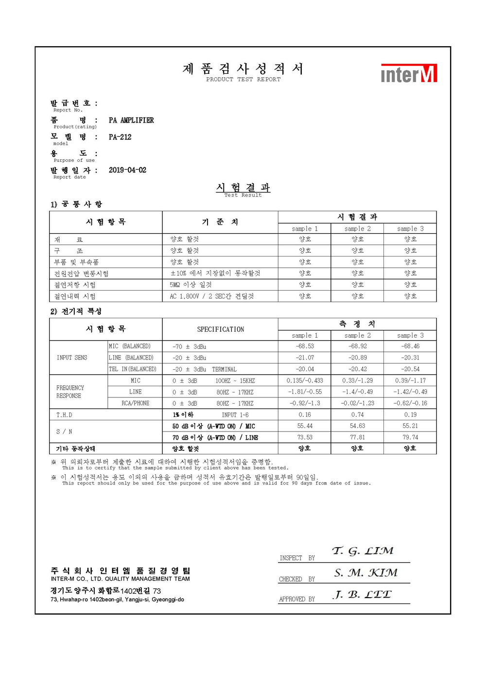 * 제품의 특징 및 사양 ( 인터엠 PA-212 )