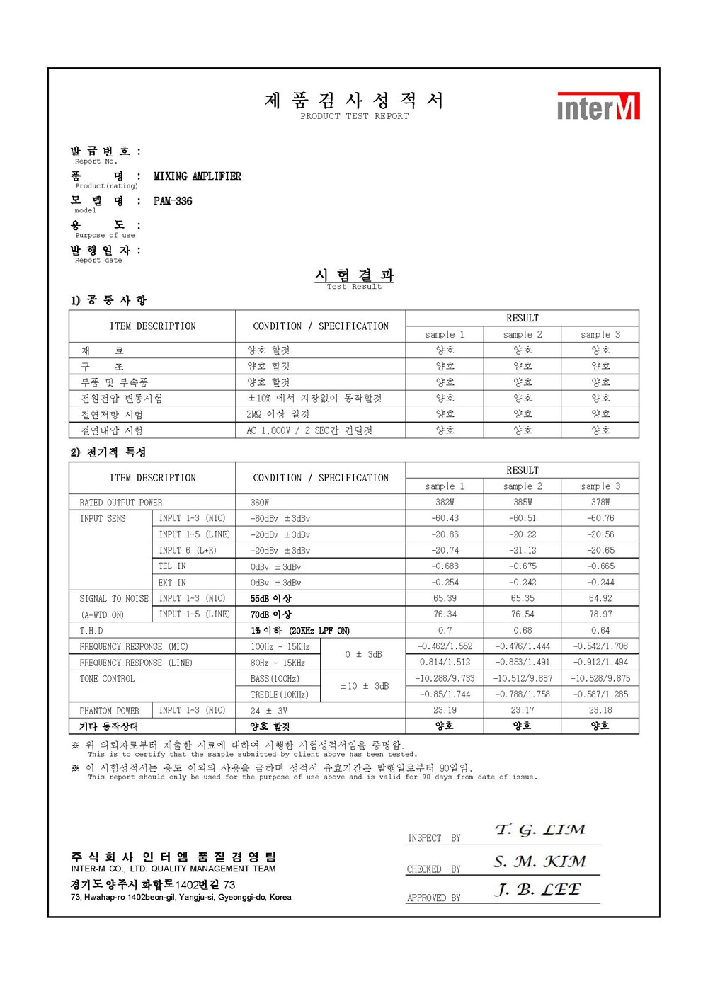 * 제품의 특징 및 사양 ( 인터엠 앰프 PAM-336 )
