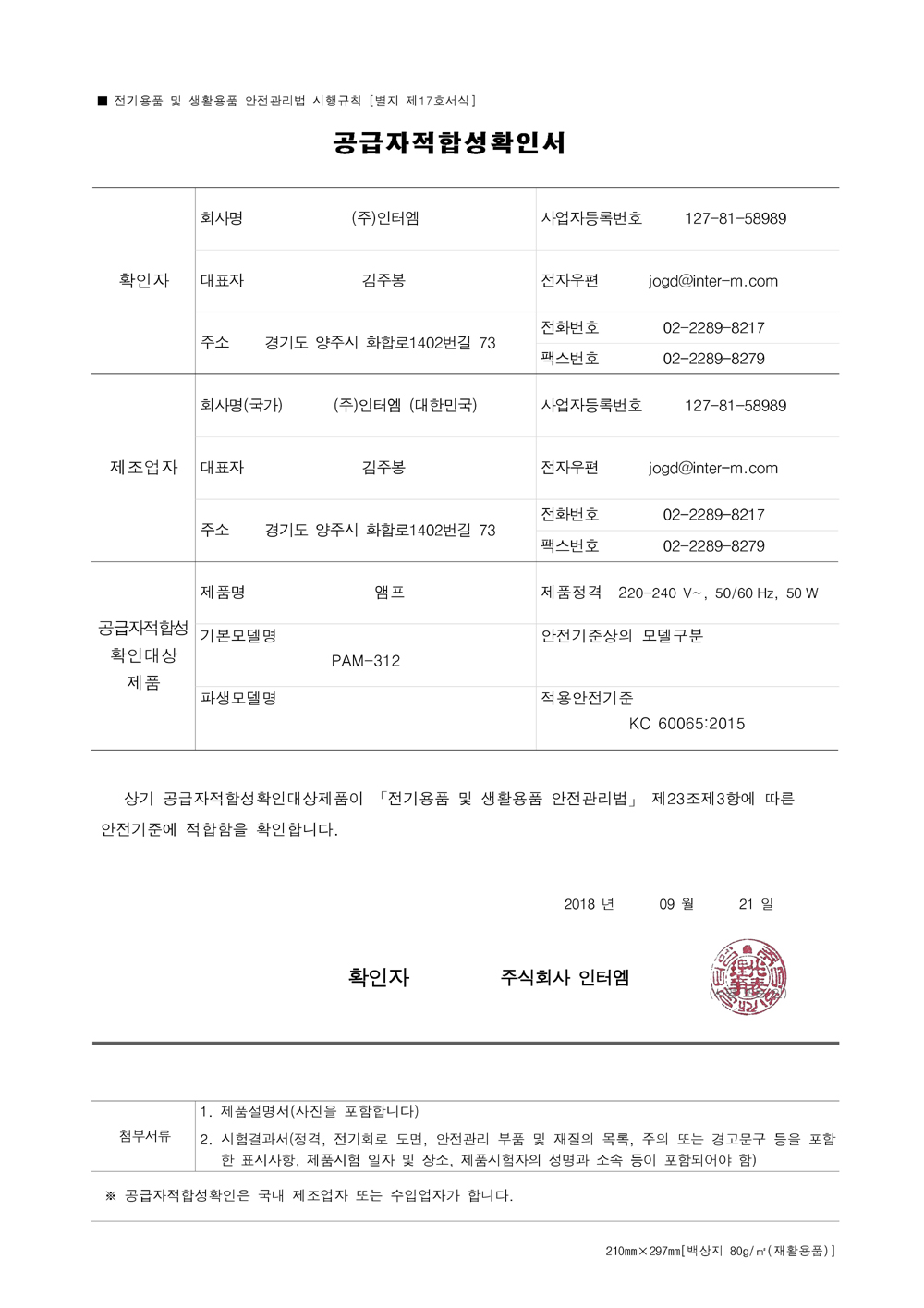 * 제품의 특징 및 사양 ( 인터엠 앰프 PAM-312 )