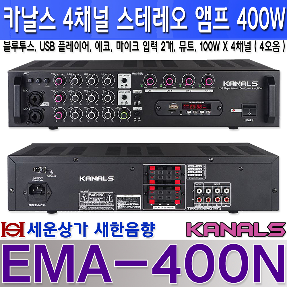 EMA-400N카날스 4채널 앰프 400W, USB, 블루투스, 뮤트,채널 별 음량 조절 : 새한음향 세운상가