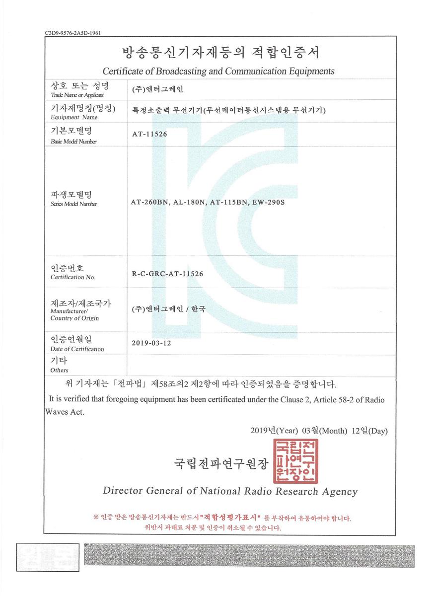 * 제품의 특징 및 사양 ( 엔터그레인 그레이스 AT-260BN )