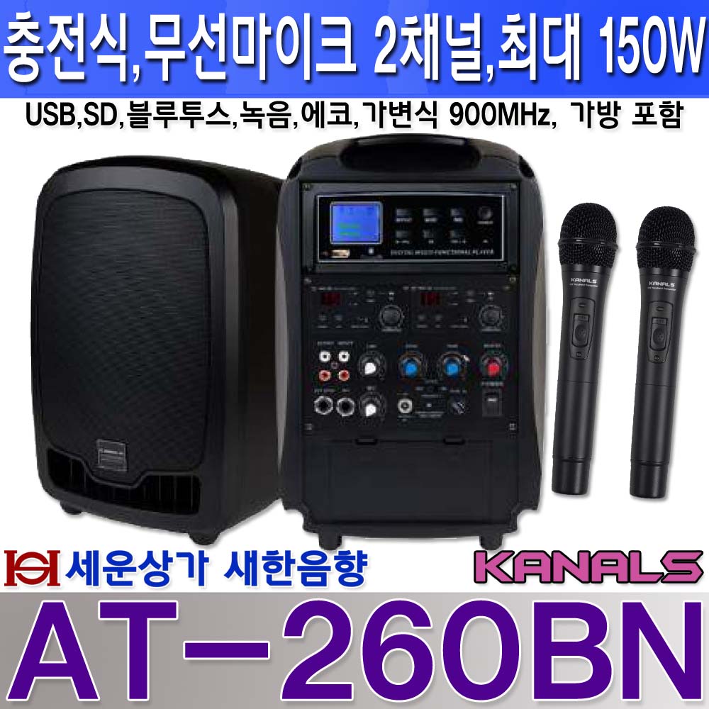 AT-260BN 카날스 150W 충전식 엠프 2채널 무선 마이크,블루투스,USB,SD : 새한음향 세운상가