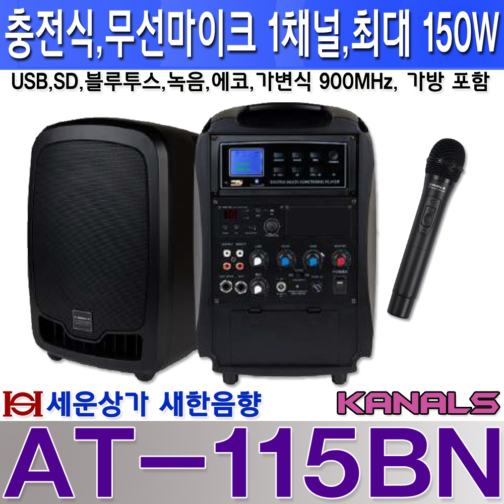 AT-115BN 카날스 충전식 엠프 150W,1채널 무선,블루투스 USB SD 녹음 에코 : 새한음향 세운상가