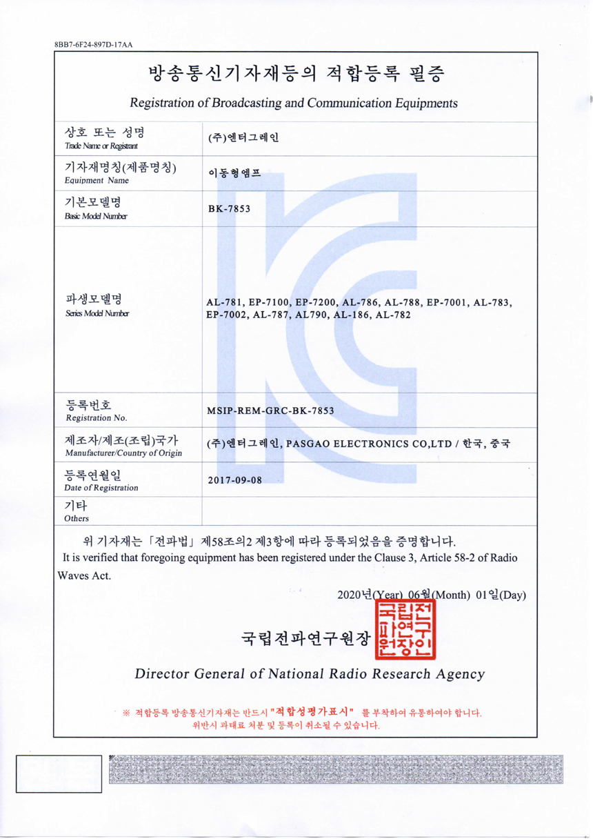 MSIP-REM-GRC-98132 / MSIP-CRM-GRC-BKT2400H / MSIP-CRM-GRC-BK80H / MSIP-CRM-GRC-BKT300
