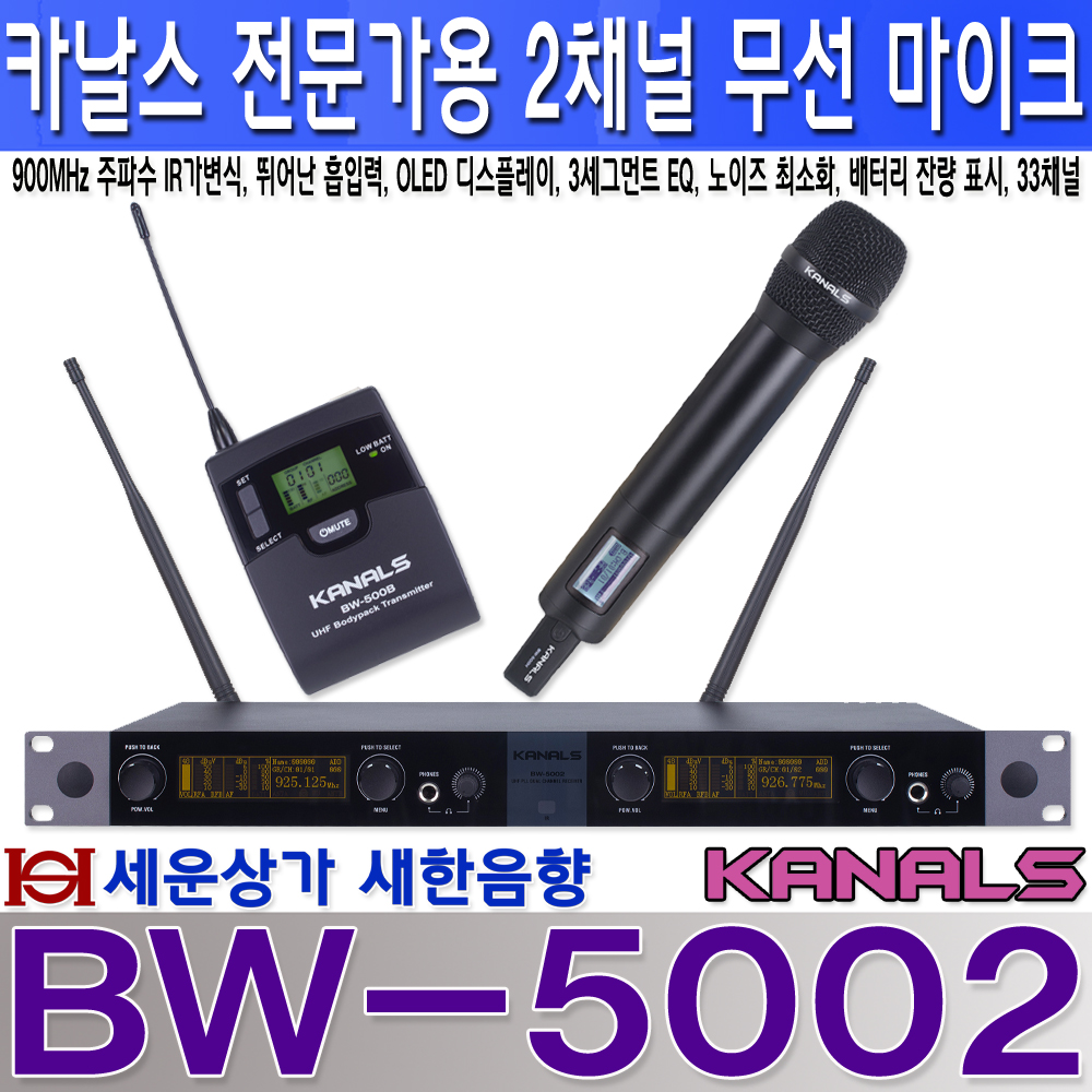 BW-5002 카날스 전문가용 2채널 무선 마이크, 900MHz 가변식, 공연, 버스킹등 : 새한음향 세운상가