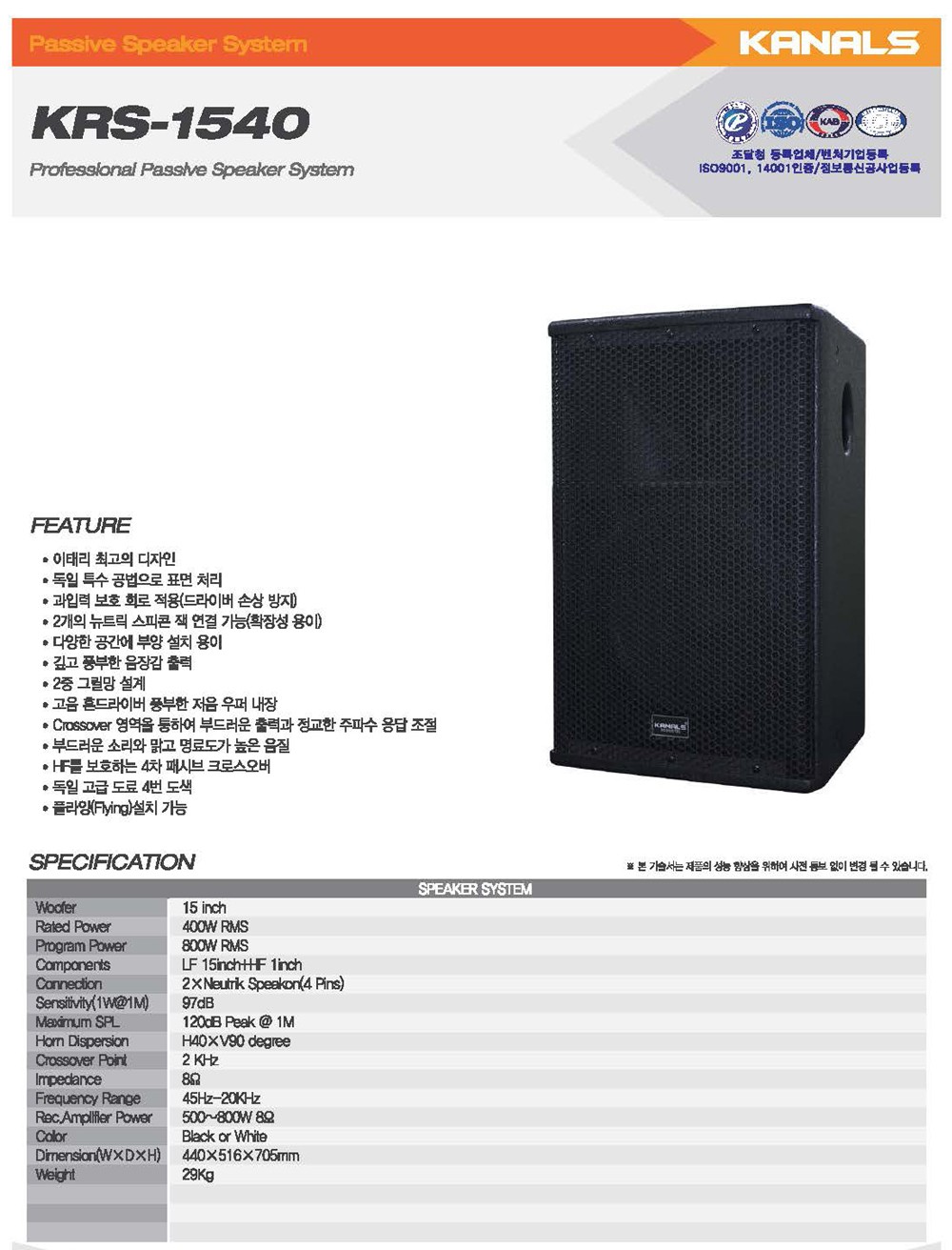 - 모델명 : KRS-1540 카날스 패시브 스피커