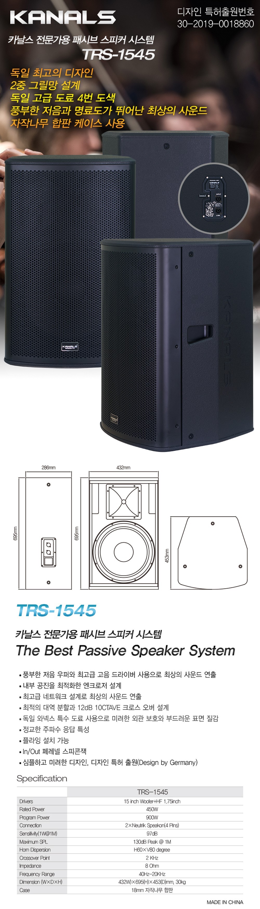 - 모델명 : TRS-1545 카날스 패시브 스피커