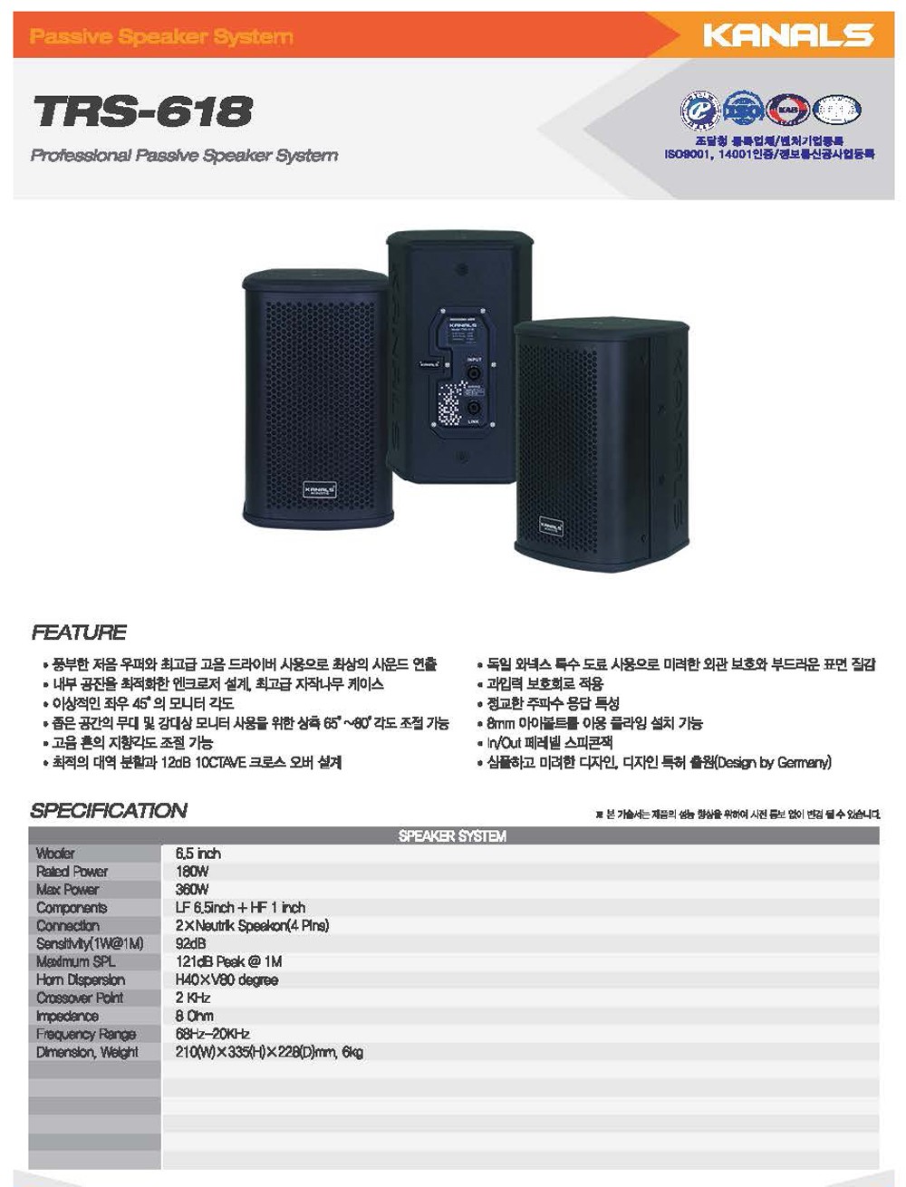 - 모델명 : TRS-618 카날스 패시브 스피커