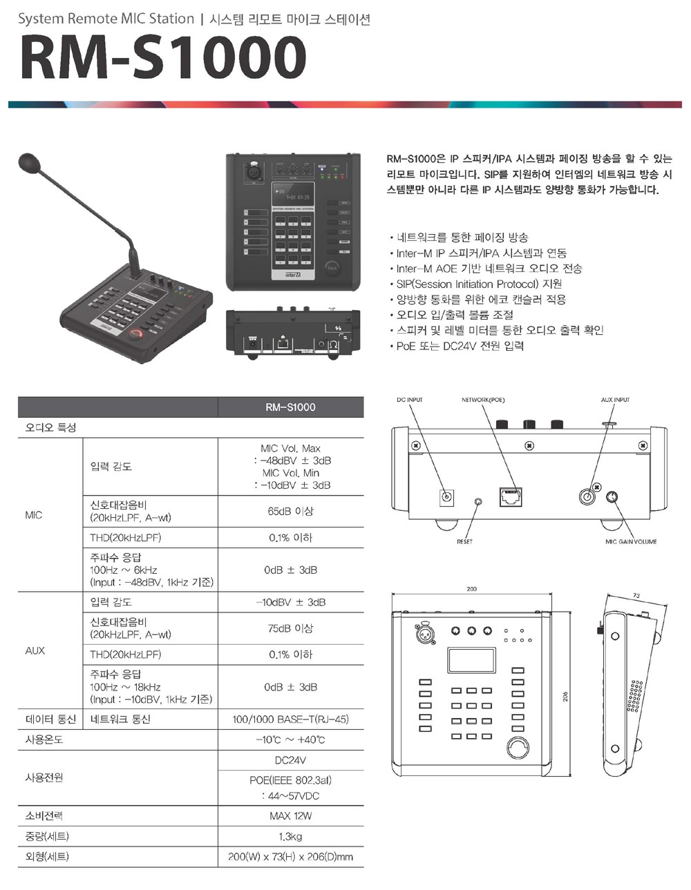 * 제품의 특징 및 사양 ( 인터엠 네트워크 리모트 마이크 스테이션 RM-S1000 )