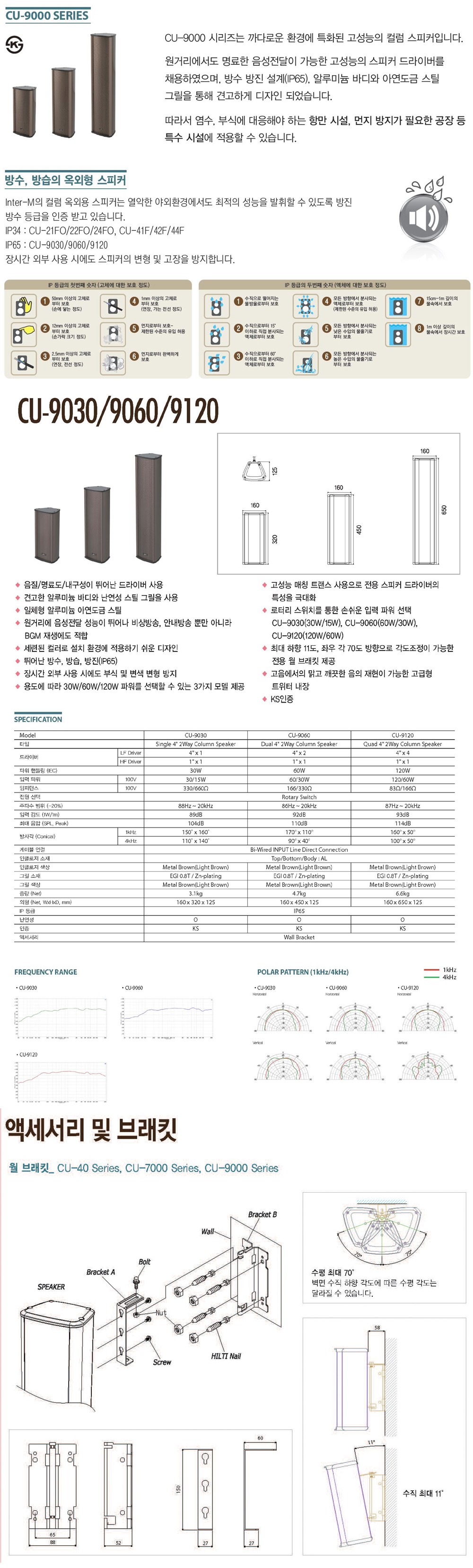 - CU-9030 시리즈는 까다로운 환경에 특화된 고성능의 컬럼 스피커입니다.